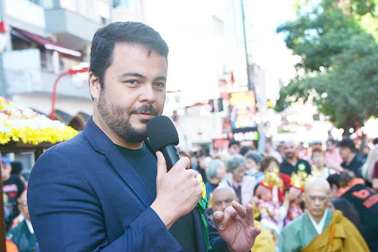 Compromisso – Nomeado pelo prefeito Ricardo Nunes no dia 11 de março como novo subprefeito da Sé, Marcus Vinicius lembrou que o Hana Matsuri era seu primeiro compromisso no bairro da Liberdade. “É uma grande alegria, mas principalmente uma grande honra poder participar de um evento tão importante, tão significativo como o Hana Matsuri, e que representa tanto para a comunidade budista e para a comunidade da Liberdade”, disse o subprefeito, explicando que antes de assumir a Subprefeitura da Sé estava como administrador na região da Mooca.